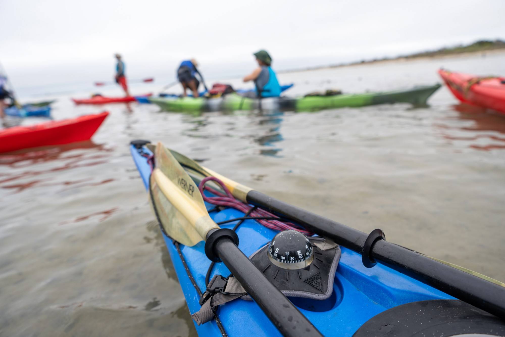 Associate Professor Joe Crowley teaches the class of about tidal currents and their impact on the trip planning for the sea kayaking portion of the class.