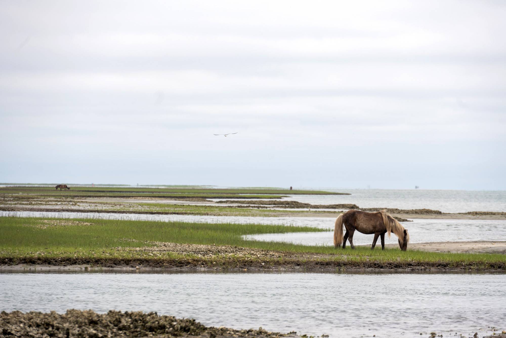 Wild horses roamed at Shackleford Banks where the class camped during the first night of the sea kayaking portion of the trip.