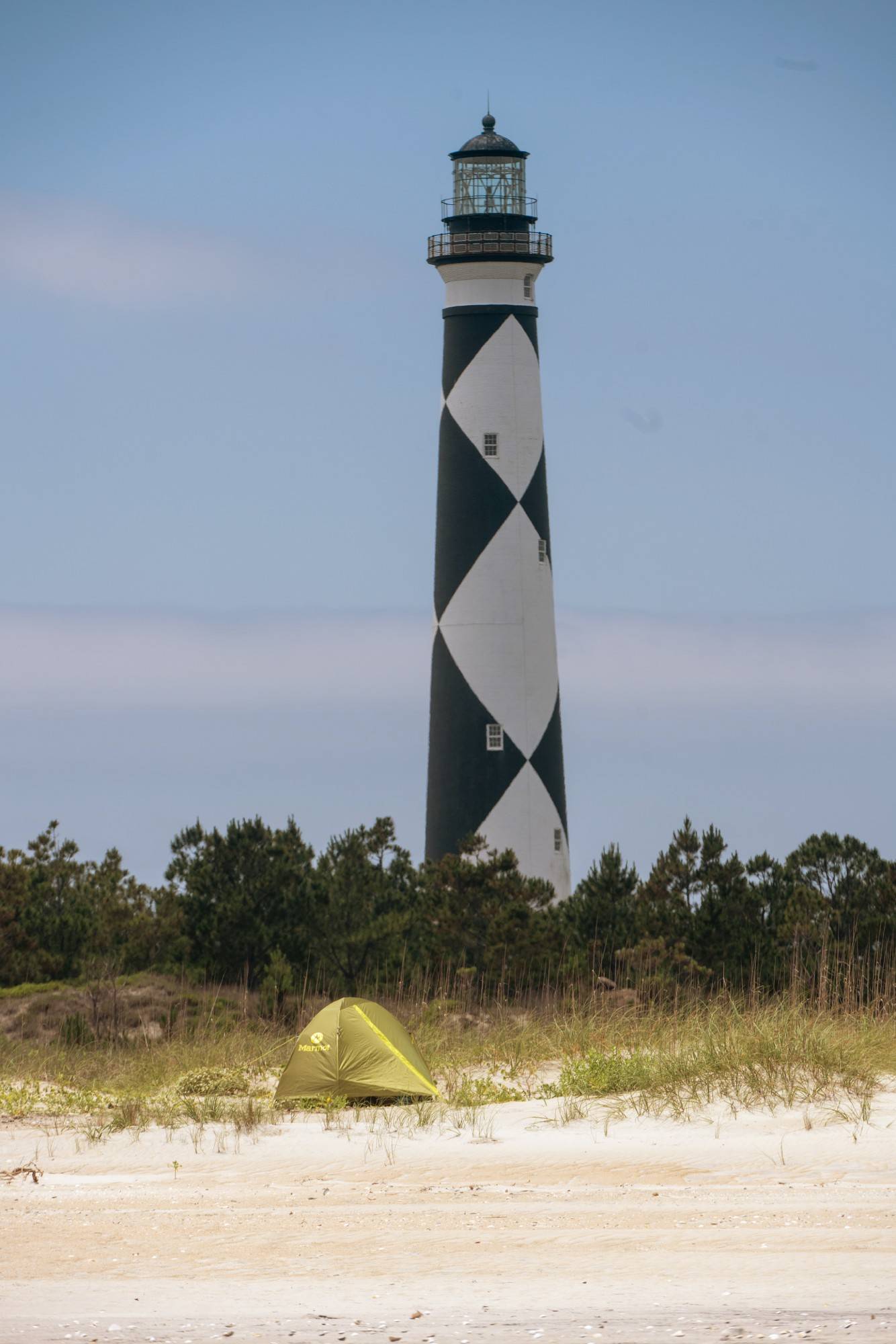 Students camped in the shadow of Cape Lookout Lighthouse on the third night in the Outer Banks.