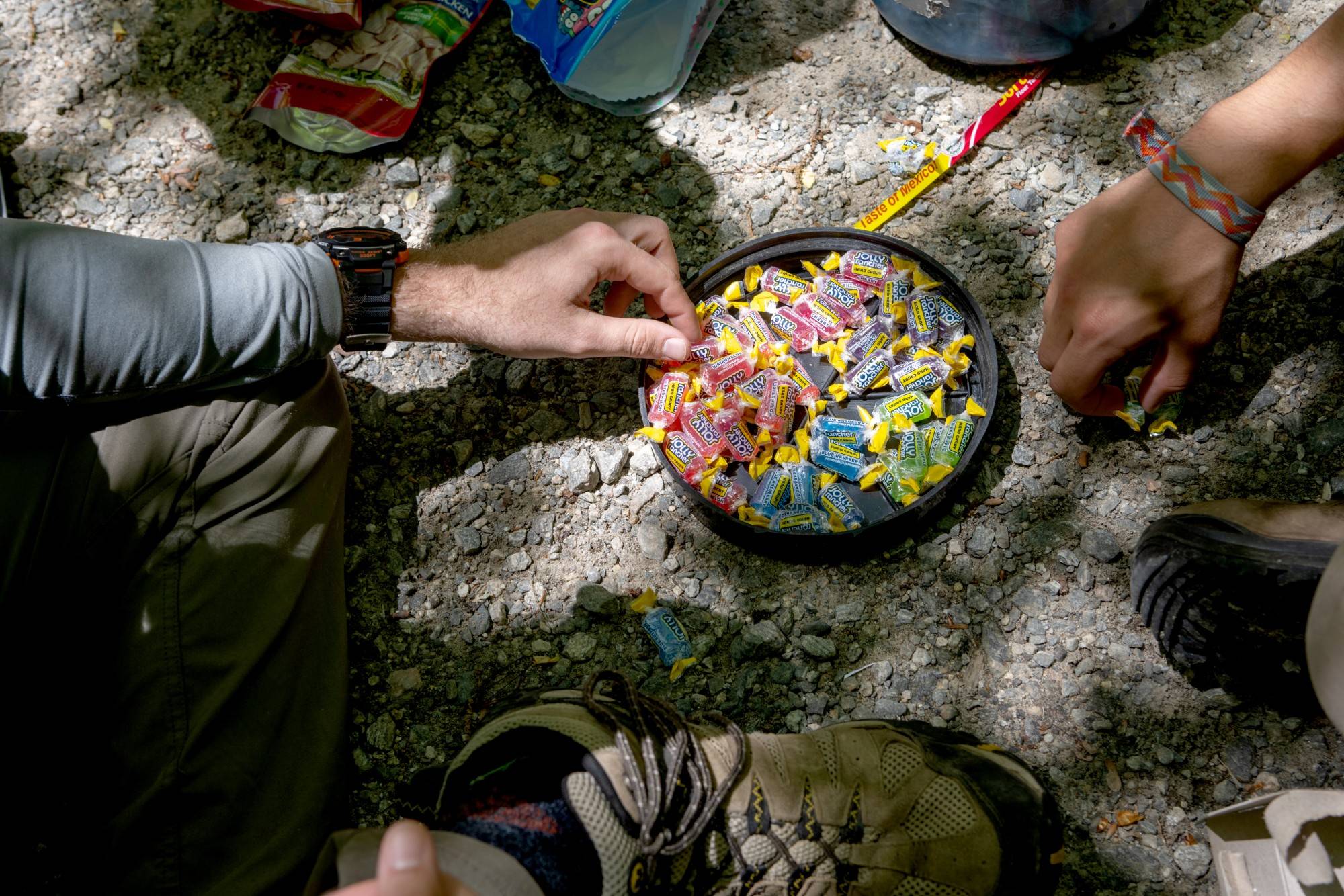 Students were empowered to decide what they needed to pack based on what they were willing to carry in their backpacks. As part of this process, this group takes turns choosing their favorite flavors from a bag of Jolly Ranchers.