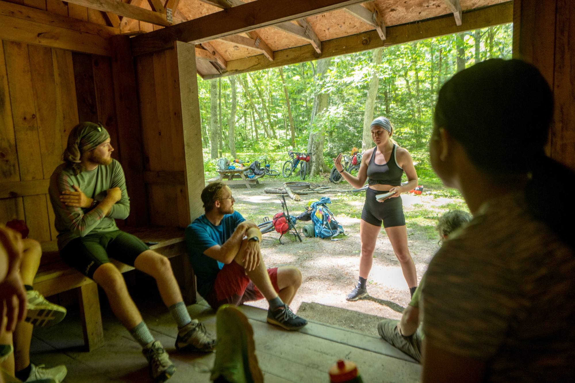Reagan Berg teaches a lesson about the environmental stewardship following a lunch break on the Greenbrier Trail.