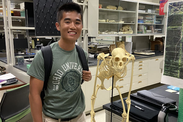 “Over the past three years, I’ve gotten the opportunity to conduct research in several labs at OHIO. Being involved in research has allowed me to see the intersections of many fields within biological sciences. For instance, my current research combines anatomy, genetics, molecular biology, and evolution to study birds. In class it can feel like these disciplines are separate, but research shows you how they come together under one roof. Finally, research at OHIO is amazing because there are labs for every interest, so you get to explore what gets you really excited!” said Nick Sze, a senior in the Honors Tutorial College biology program and a member of the OHIO Marching 110.