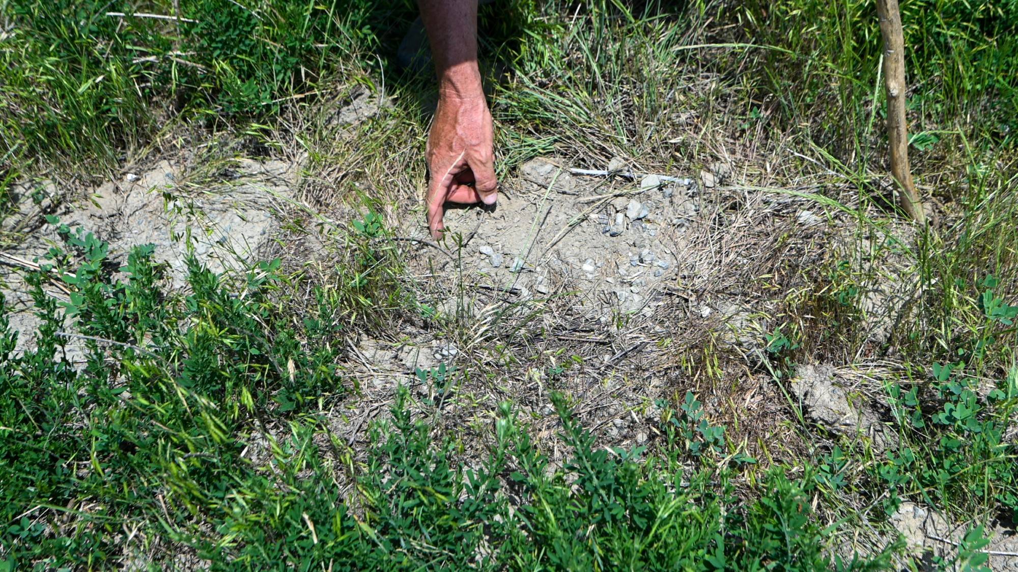 Dr. Willem Roosenberg points to the very subtle markings in the sand that helped him identify the site of a turtle nest.