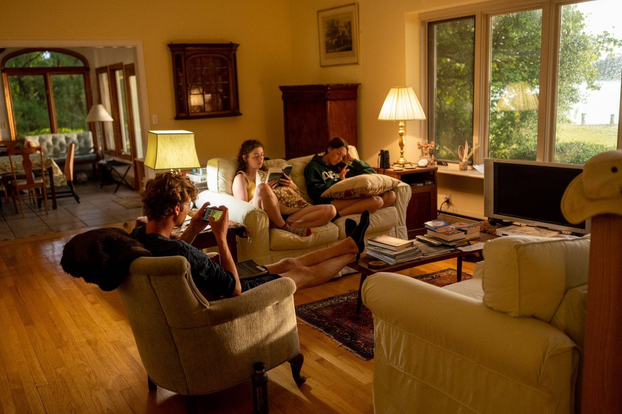 Students relax before dinner after a long day's work.