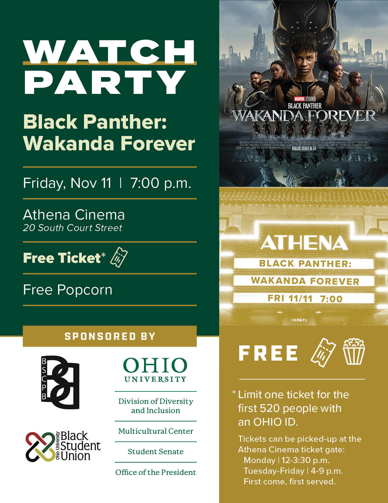 OHIO students, faculty, and staff are invited to a showing of the sequel to Marvel’s hit movie “Black Panther” this Friday, Nov. 11, at 7 p.m.