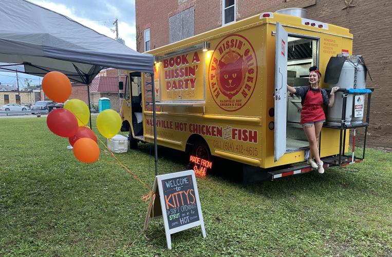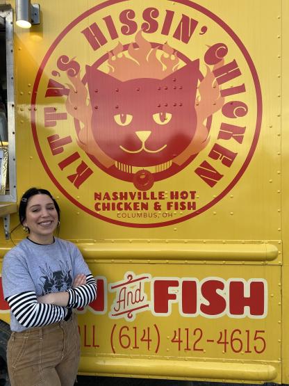 Webb said when the COVID-19 pandemic hit in 2020 she started to reevaluate her career choices and began to listen to the inner voice that reminded her of the dream of being a business owner. In 2021 she left her job and took some time to decide on her next move, ultimately following her passion for food and leveraging her Ohio University business degree to open Kitty’s Hissin’ Chicken food truck in 2022.