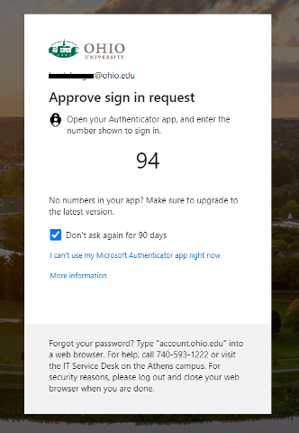 The Office of Information Technology (OIT) is here to help with any questions about this update. View Using the Microsoft Authenticator App with Azure MFA for more information or visit help.ohio.edu, where you can submit a ticket or contact the IT Service Desk.