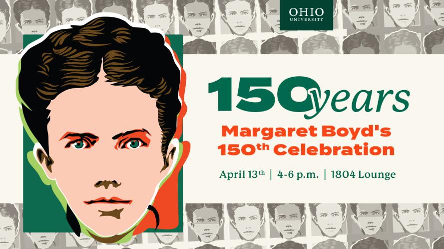Join the Ohio University Women’s Center, Division of Student Affairs, Office of the President, Office of the Provost and the Margaret Boyd Scholars in commemorating Boyd’s legacy and supporting access to higher education for all. Margaret Boyd’s 150th Celebration will take place on April 13 from 4:00 to 6:00 p.m. in the 1804 Lounge of the Baker University Center. Refreshments will be provided.