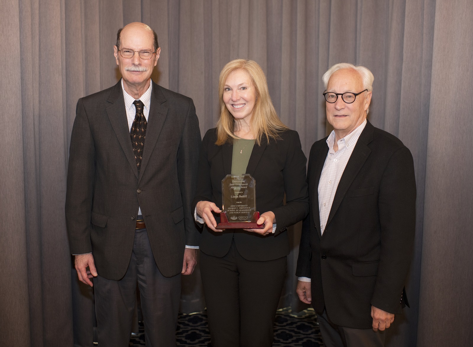 Linda Bailiff, BBA ’87, MPA ’90, director of the Ohio Public Works Commission, received this year’s Outstanding State Government Alumni Award from Ohio University. During her acceptance speech, she too recognized Dean Weinberg’s legacy and impact.