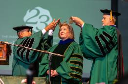 On October 18, 2023, Dr. Lori Stewart Gonzalez was sworn in as Ohio University’s 23rd president. As with most important events, the ceremony included a lot of formal elements that might not have looked familiar to everyone who attended or watched online. We’ll break down exactly what the ceremony was, its history, and what those terms mean.