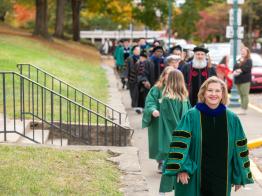 The academic procession was made up of delegates from universities across the country and participating Ohio University faculty. Delegates are authorized individuals who represent the new president. Members of the procession donned traditional academic dress unique to their institution, the origins of which date all the way back to medieval European universities.