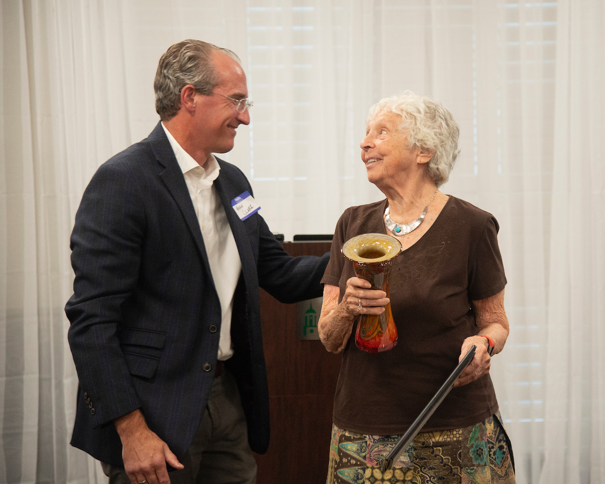 Christine Knisely also received an ambassador award. After retiring from her role at the Heritage College of Osteopathic Medicine’s Office of Research and Grants, Knisely served on the Athens City Council as well as the local and state boards of the League of Women Voters. Clark pointed out that she has been active in numerous projects over the years and is a role model for healthy aging.