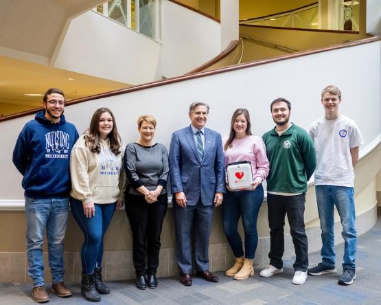 During fall semester, the members of the Emergency Nursing Club (ENC) decided to raise funds towards the purchase of three new Automated External Defibrillators (AEDs) for the College of Health Sciences and Professions (CHSP) to install on all three floors of Grover Center.