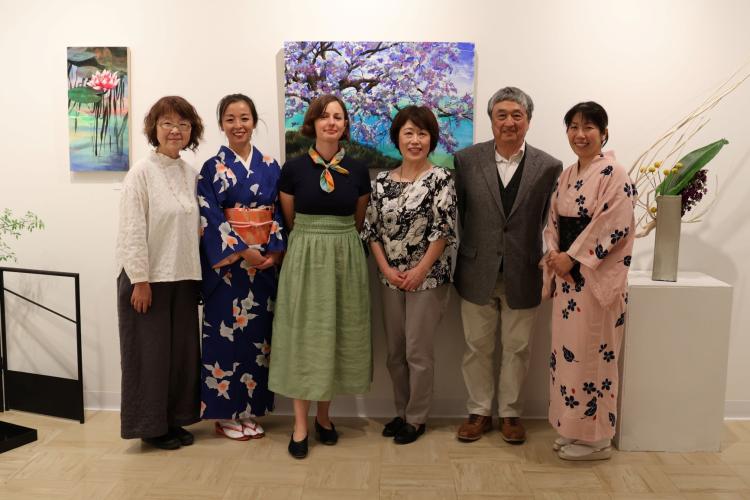 Accompanying Eguchi's immersive tea ceremony was a breathtaking display of Japanese traditional paintings by Hiromi Katayama, Ohio University Eastern Visiting Arts Professor. Hailing from Ibarki, Japan, Katayama's artistry transcends borders, offering a profound glimpse into the soul of Japanese culture. Utilizing traditional Japanese pigments and techniques, she meticulously crafts her artwork, drawing inspiration from cultural foundations in nature. With each brushstroke, Katayama serves as a cultural ambassador, sharing the essence of Japanese aesthetics with the world.