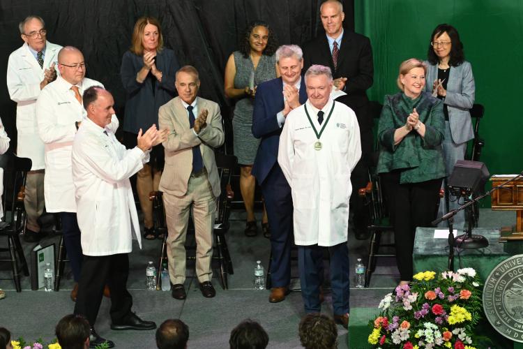 Moomaw, this year’s recipient of the Phillips Medal, the college’s most prestigious honor for public service, spoke during the 2024 Convocation and White Coat Ceremony held Aug. 9.
