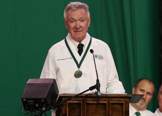 In a speech to the incoming Heritage College of Osteopathic Medicine Class of 2028, Ronald Moomaw, D.O. (’80), NASA retired physician and a member of the college’s first class, reflected on the changes that have occurred in medical education and medicine and encouraged students to be resilient and adaptable in their future medical careers.
