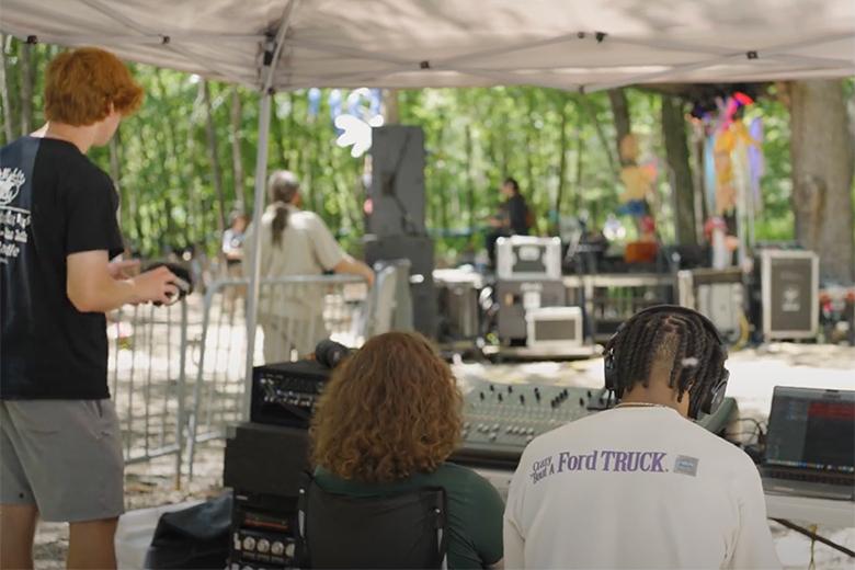 Producing the Creekside Stage performances quickly introduced students to the chaos and pressure of working at a live event, but collaboration allowed them to rise to the occasion. The three teams worked together to overcome equipment malfunctions and the scorching July weather.