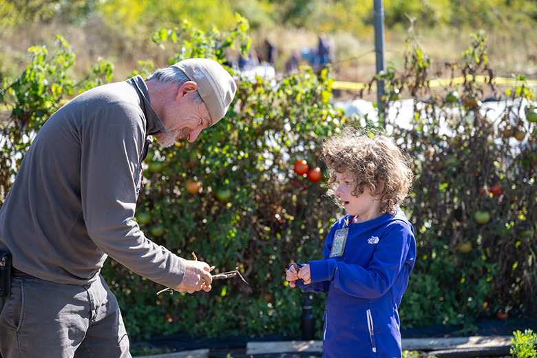 Dr. David Rosenthal often gives tours of the OHIO Student Farm and helps younger students like those in the Sprouts program engage in hands-on lessons.