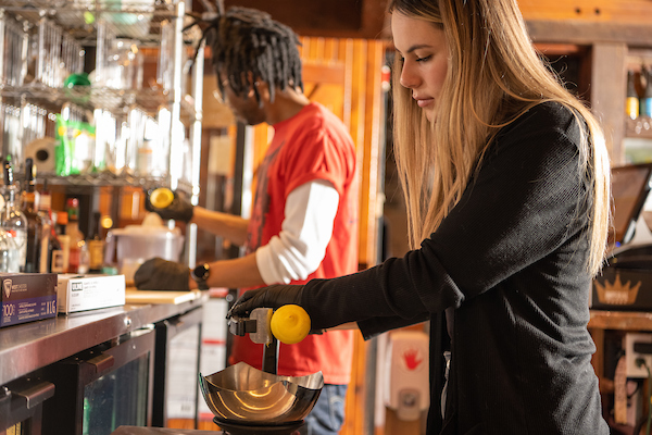 Drawing on real-life sales data, the students from this past spring’s course focused on identifying trends and popular products to guide their creation process. Liam McDonald, a brewpub brewer at Jackie O’s, helped ensure the beer would be both innovative and marketable and helps the students while they work in the brewery.