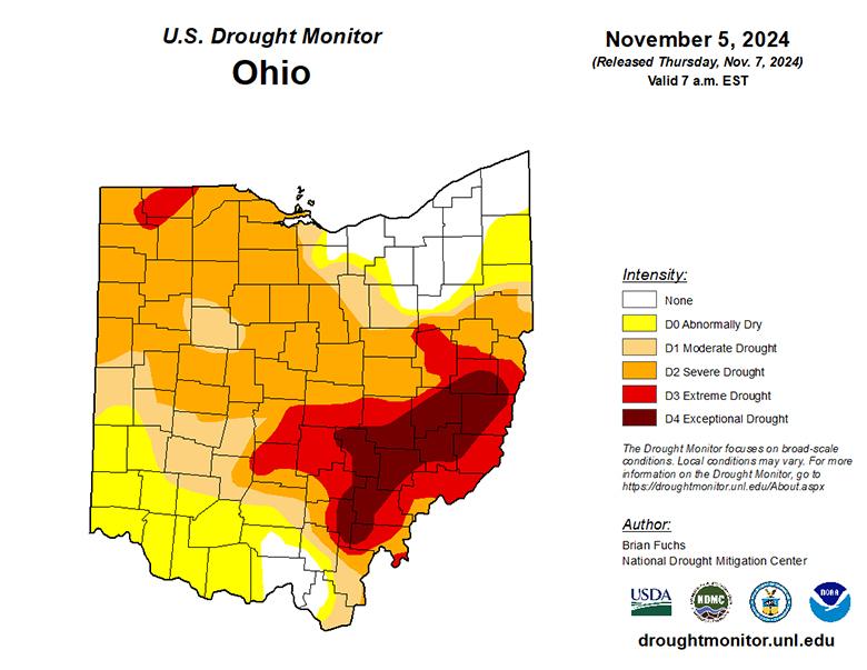 The drought is very localized which means the impact is limited to Southeast Ohio and some surrounding areas, however, Southeast Ohio is not an area typically prone to drought, and especially not droughts of this magnitude.