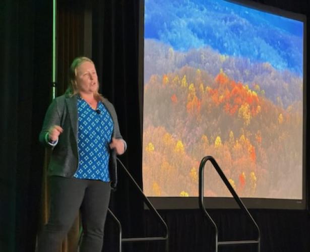Natalie Kruse-Daniels, professor and director of the Environmental Studies Program in the Voinovich School, took the stage as a speaker. Her presentation discussed climate resilience in Appalachia.