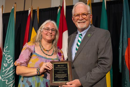 - Hylie Voss (OHIO MA Communication and Development Studies 1996) was awarded the Alumni Impact Award for her advocacy in environmental stewardship and community engagement, continuing a family legacy of advancing international education and sustainability across Appalachian Ohio and beyond.