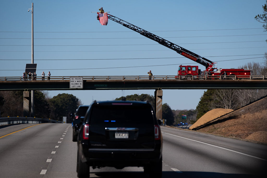 When we arrived at Phoebe Sumter [Medical Center] to pick up the body, I had just stepped out of the motorcade and was still wrapping my head around the level of access I had been given. I had pre-positioned a folding ladder near a small camera platform to get a better vantage point. As I hustled up before the family arrived, I saw a woman holding my ladder, looking the other way. I walked up and said, "Excuse me, that’s my ladder." She turned around, looked at me and said, "I know. I’m waiting for you. I’m here to hold it."