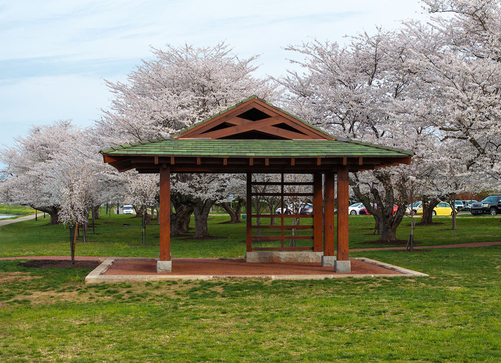 The Japanese Pavilion in Friendship Park, above left, stands amongst the cherry trees planted in celebration of the fruitful partnership between Ohio University and Chubu University.