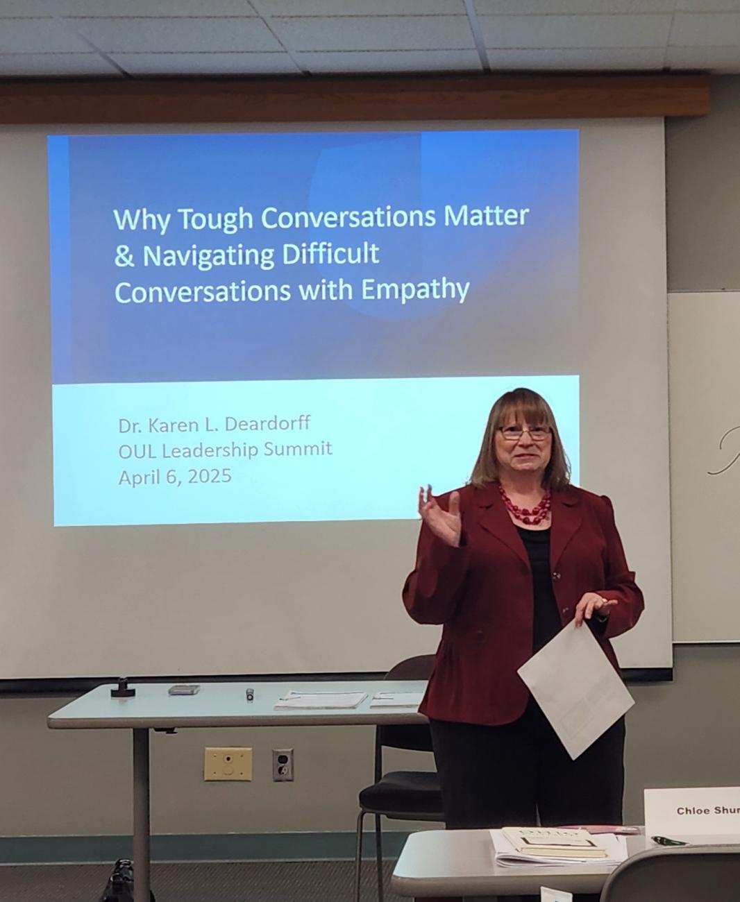 Deardorff told the group that having difficult conversations can build trust and strengthen relationships, prevent resentment and misunderstanding, and lead to personal and professional growth and progress. She had three pieces of advice on how conversations could be approached which would result in a positive outcome.