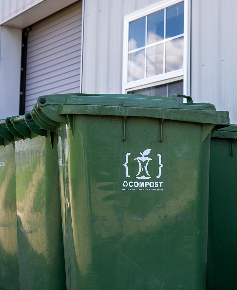 To ensure that all food waste data is recorded, each individual compost bin is weighed before being dumped into the composting vessels.