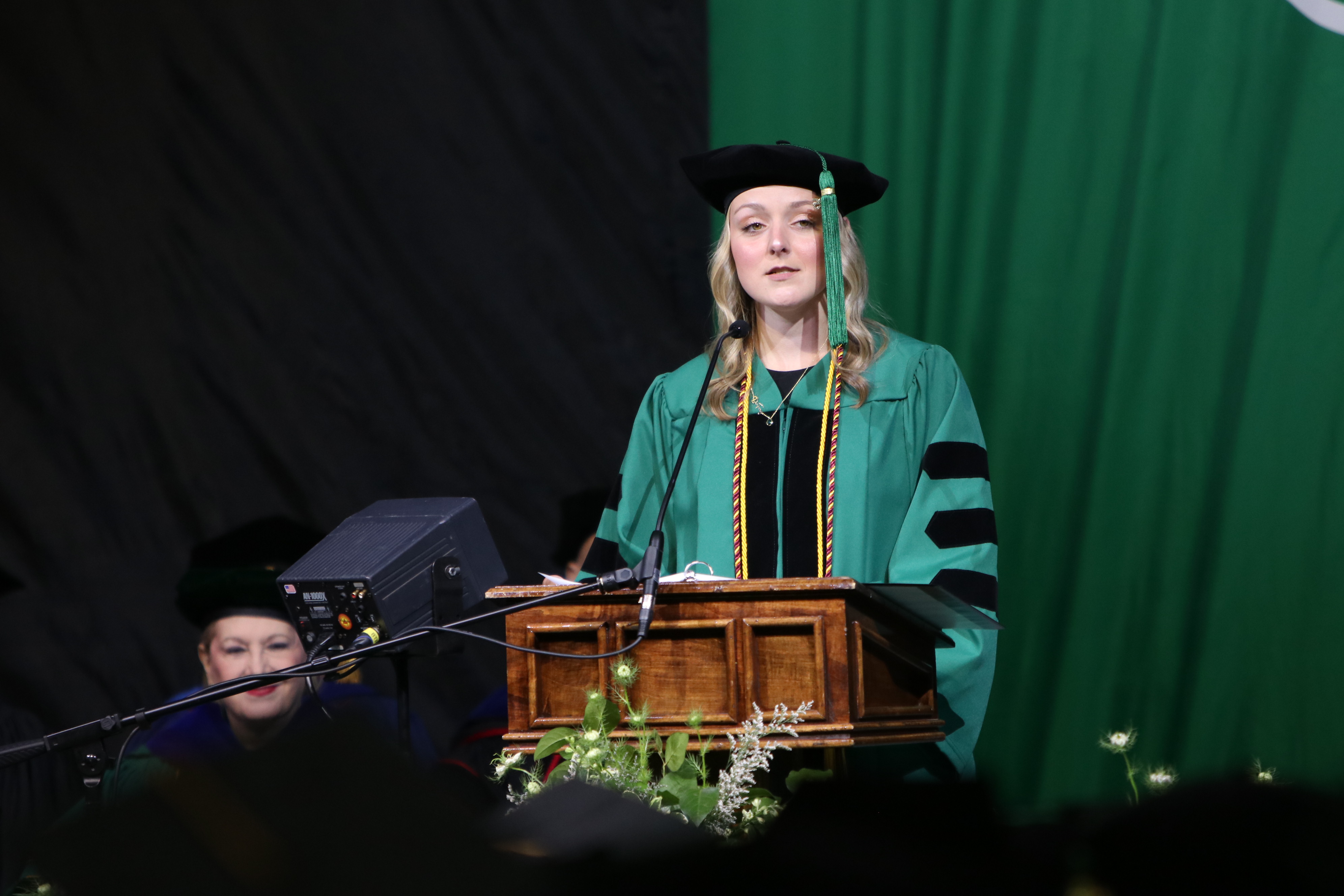Molly Frey, the student speaker for the ceremony who served as the national Student Government Association representative and SGA president on the Dublin campus, asked students to think back to the moment they wanted to become a doctor.