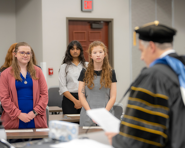 The Lambda of Ohio University Chapter of Phi Beta Kappa recently initiated nearly 50 new members on Friday, May 2, at Grover Center. These students met extensive academic requirements to qualify for membership.