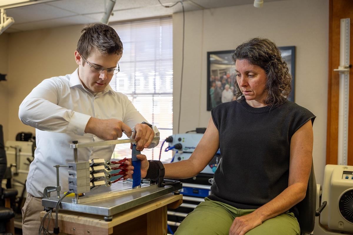 That passion for research is now at the heart of his Ph.D. in Translational Biomedical Sciences work. After earning a bachelor’s degree in mechanical engineering, Shaw earned a biomedical engineering master’s degree and now studies under Dr. Brian Clark, focusing on neuromuscular physiology and blending his mechanical engineering skills with biomedical challenges.