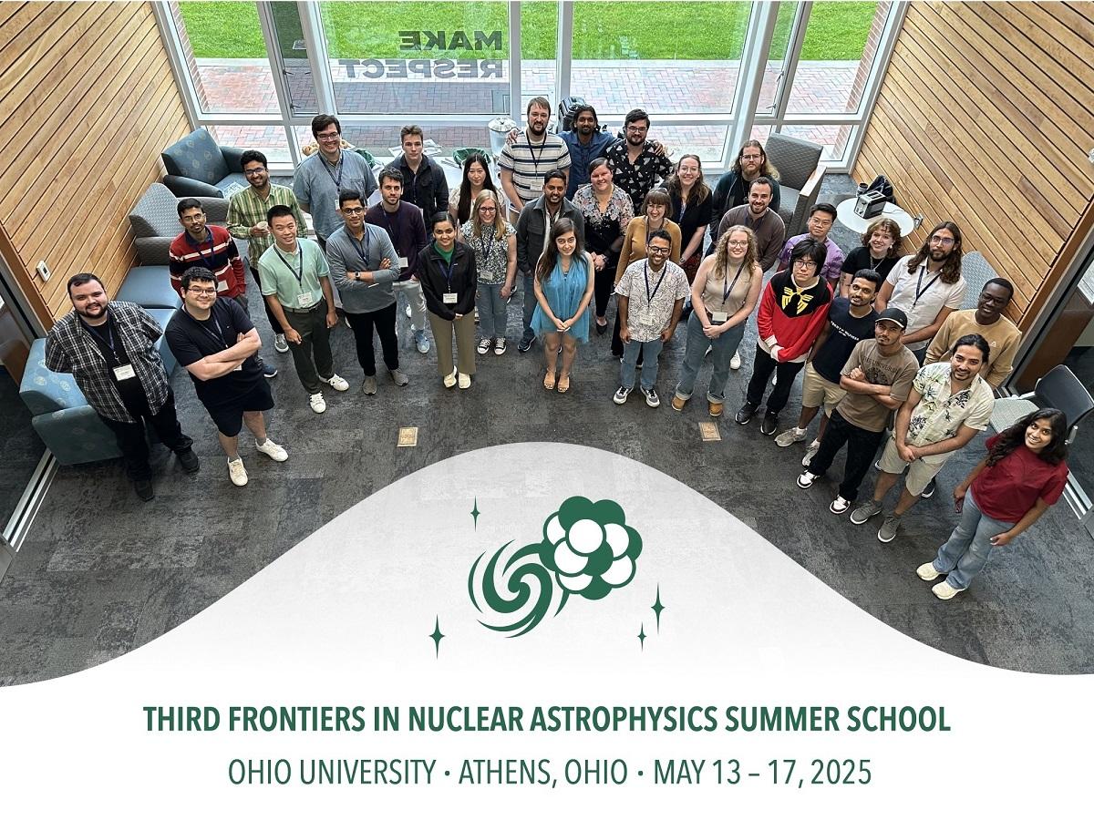 Also in May, Ohio University hosted the Third Frontiers in Nuclear Astrophysics Summer School. Held May 13-17, the event was a great success, as 38 participants took part in the activities.