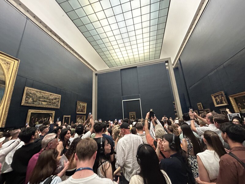 Crowds of tourists swarm the Mona Lisa in Paris' Louvre Museum.