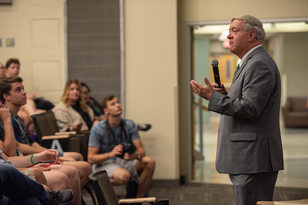 “We’re just thrilled to have you here,” said Ohio University President M. Duane Nellis. “It’s great to have you as part of the E.W. Scripps School of Journalism. It is one of the most elite schools of journalism in the United States. … We’ve had 41 Pulitzer Prize winners that have come through the Scripps College, so it’s an amazing success story.”