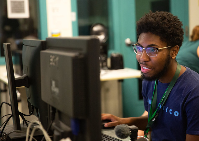 The first keynote speaker Josh Jamerson speaks to the high school journalism workshop students. He's a 2015 OHIO graduate and is covering the 2020 Democratic Party presidential race for the Wall Street Journal. Photo courtesy of the E.W. Scripps School of Journalism During the workshop, the students attended presentations on investigative reporting, diversity, coding, design and data journalism and covering suicide. They also attended five sessions focused on their chosen track: broadcast, magazine, news writing, photojournalism, sports, advertising and public relations, design, virtual reality video or podcasting.
