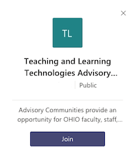 - Sign up for the Teaching and Learning Technologies Advisory Community on Microsoft Teams.
