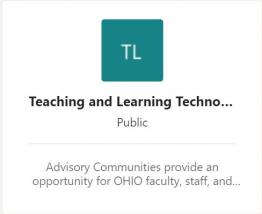 The Teaching and Learning Technologies Advisory Community is open to OHIO students, faculty, and staff who have an interest in both teaching and learning technologies and the physical environments where technology is utilized.