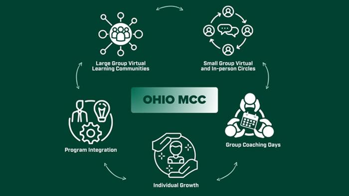 OHIO MCC creates a culture of mentoring and coaching that touches all students. Touchpoints can include large group virtual learning communities, small group virtual and in-person circles, group coaching days, program integration, and individual growth opportunities.