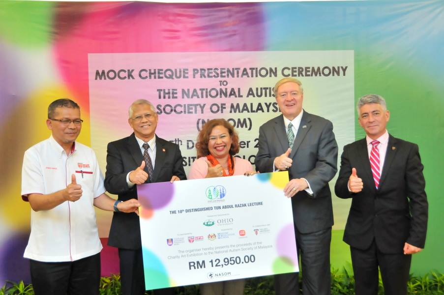 At the 10th Distinguished Tun Abdul Razak Lecture, there was an exhibition of the artwork made by participants of art workshops. The guests of the 10th Distinguished Tun Abdul Razak Lecture had an opportunity to purchase the artwork on exhibition. The proceeds went to the National Autism Society of Malaysia.