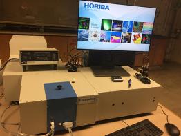 The Fluorolog-3-12 (JY Horiba Inc.) is a spectrofluorometer consisting of a 450 W xenon arc lamp, a single excitation monochromator, a sample compartment with a cuvette holder, a double emission monochromator, and a photomultiplier tube (PMT). A fiber-optic probe can be coupled to the sample compartment such that spectroscopic measurements can be made remotely. Although the spectrofluorometer has been designed for fluorescence spectroscopy, fluorescence (as either an excitation or emission spectrum) as well as reflectance spectra (in synchronous scan mode) can be measured. The adjustable variables are excitation wavelength(s) and emission wavelength(s), excitation and emission slit widths, sampling increment, integration time, and collection geometry (front face versus right angle collection).