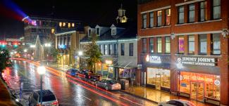 night shot of Court Street and another picture of Emeriti Park in the spring