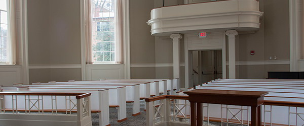 The Chapel was the gift of John W. Galbreath in memoriam of his wife, Helen, a 1919 alumna who died in 1946. Mrs. Galbreath was the former Helen Mollineux Mauck, daughter of the prominent Mauck family of Gallipolis, Ohio. Galbreath Chapel can accommodate 150 individuals in Theater Style seating.