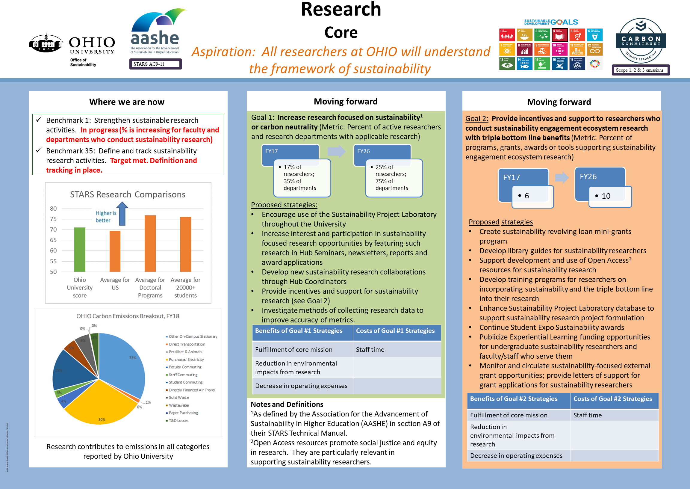 Research is a core component of the Office of Sustainability and the Ohio University Sustainability and Climate Action Plan. Specific goals, benchmarks, strategies, and data can be found on the research site.