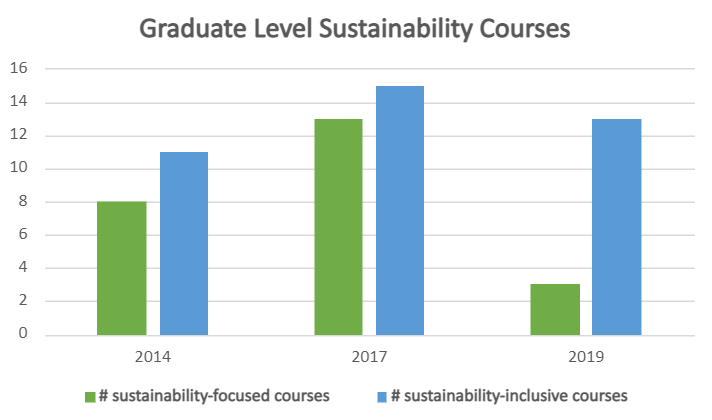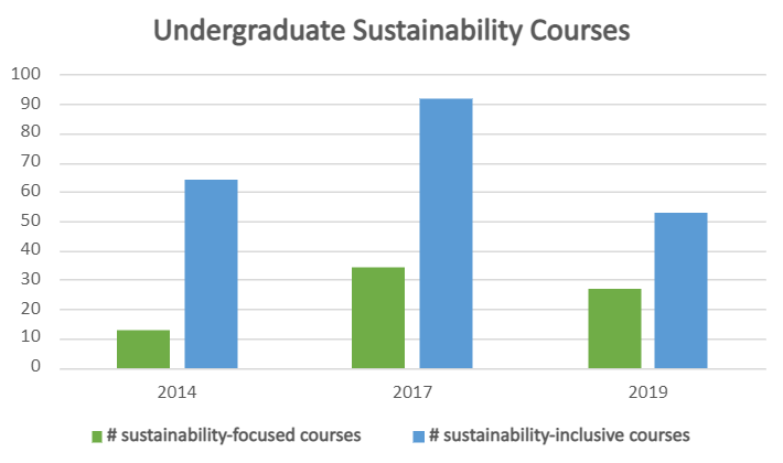Sustainability Course Listings: The Office of Sustainability maintains a listing of undergraduate and graduate course which are sustainability-focused or sustainability-related, according to the Association for the Advancement of Sustainability in Higher Education.