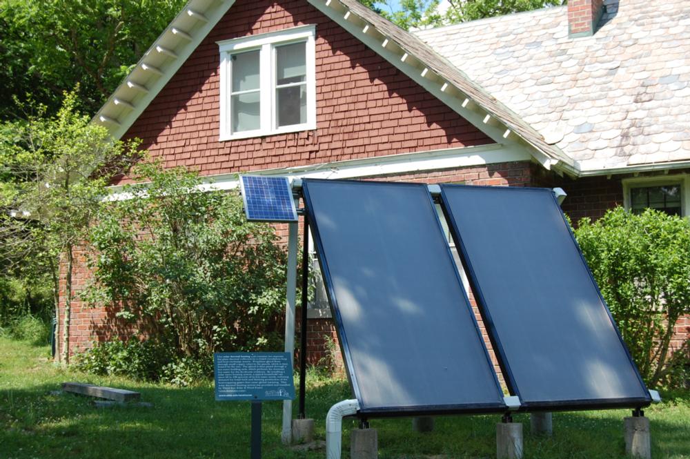 The Solar Thermal system at the OHIO Ecohouse helps reduce the amount of energy dedicated to heating the water used by the residents.