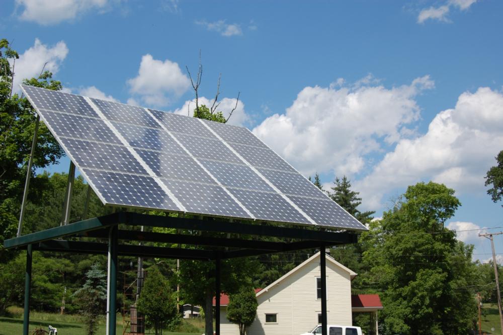 The PV array at the OHIO Ecohouse is mounted to a raised frame to optimize access to sunlight.