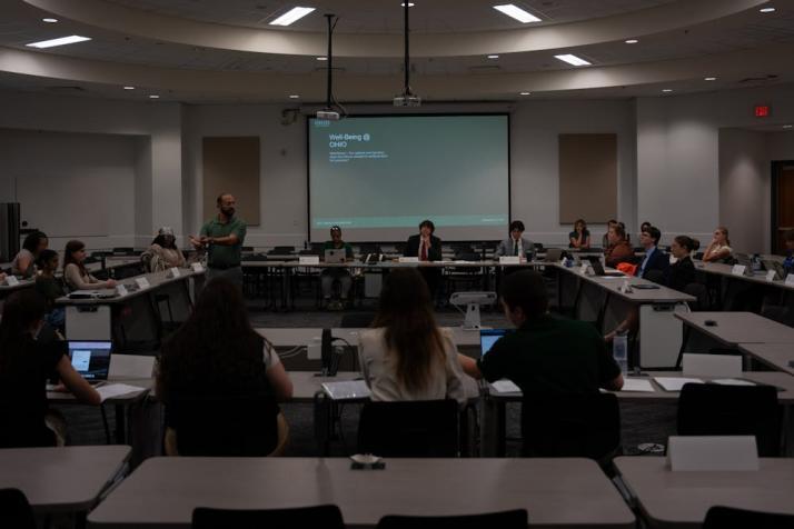 Student Senate listens to a speaker in Walter Hall, Sept. 25, 2024, in Athens.