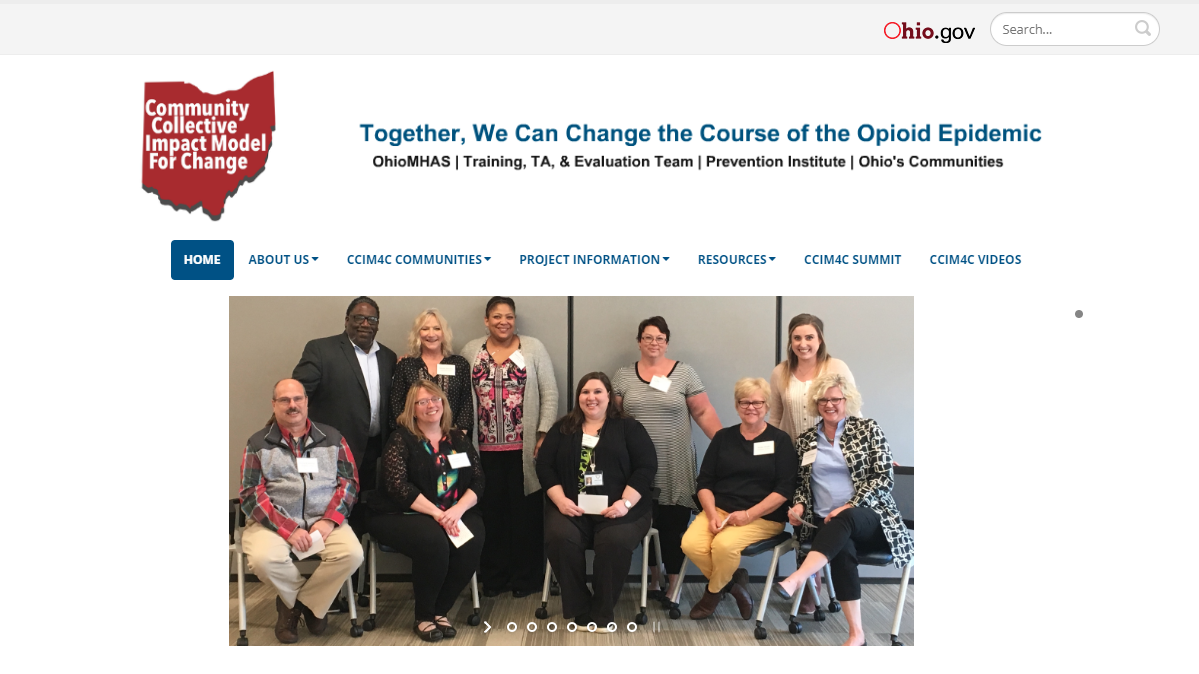 The Community Collective Impact Model for Change (CCIM4C) Initiative is a highly innovative approach aimed at preventing opioid use and abuse, reducing opioid-related deaths, and increasing access to treatment in the state of Ohio. By combining a data-driven, strategic planning process (the Strategic Prevention Framework, or SPF) with an emphasis on working collectively across the continuum of care (the Collective Impact Model), the eighteen funded communities are working to address the opioid epidemic in their communities by utilizing a trauma-informed approach that reduces trauma and promotes resiliency (the Tool for Health & Resilience in Vulnerable Environments, or THRIVE, and the Adverse Community Experiences and Resilience Framework, or ACE|R).